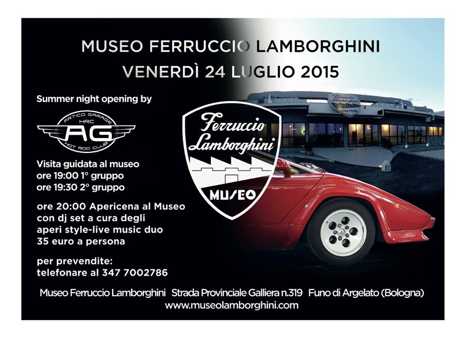 il 24/7/2015 avrò l’onore di suonare con il progetto musicale Aperi Style (www.aperistyle.wordpress.com) per l’opening night al museo Ferruccio Lamborghini.